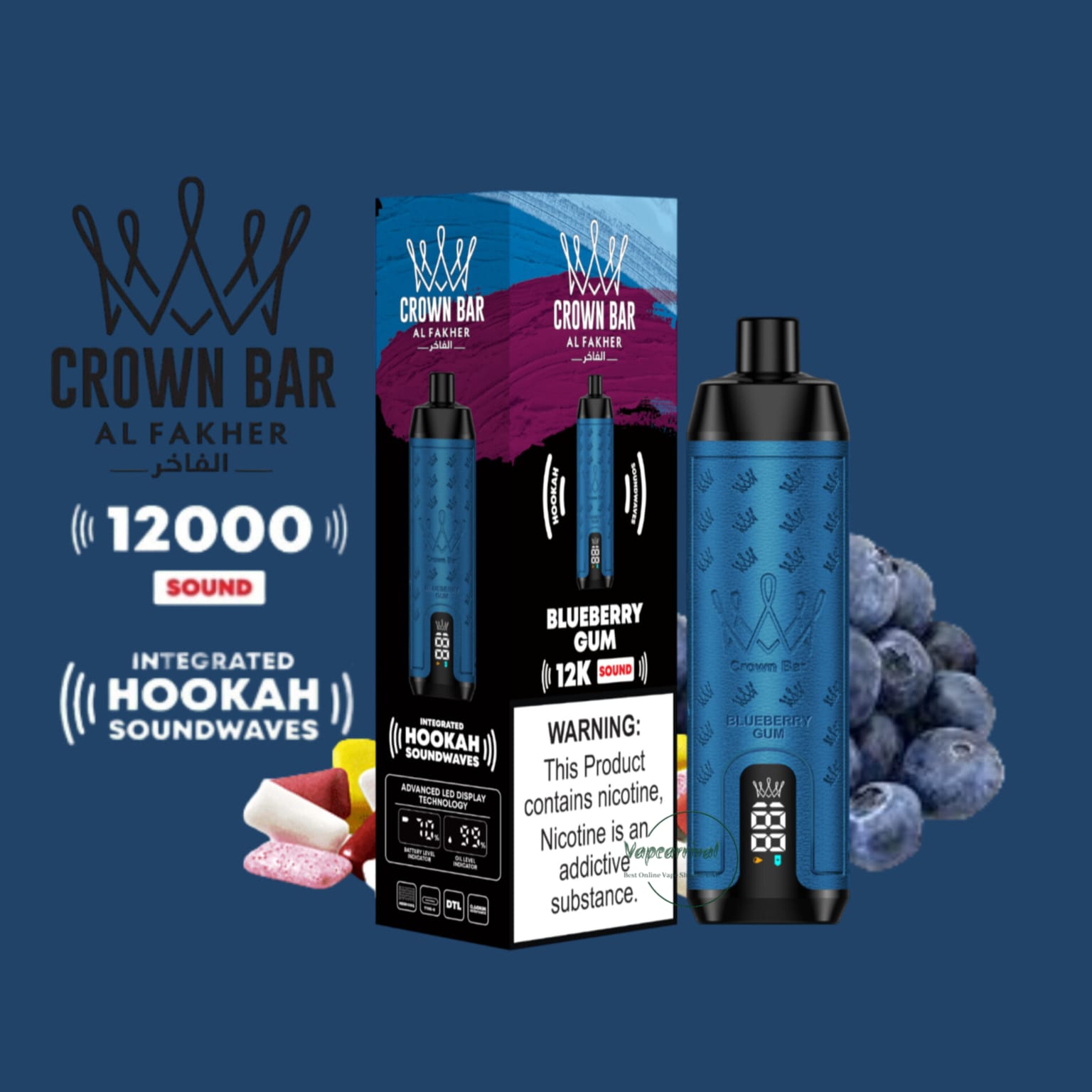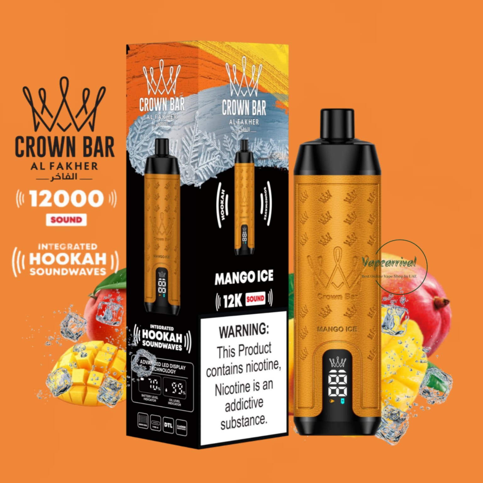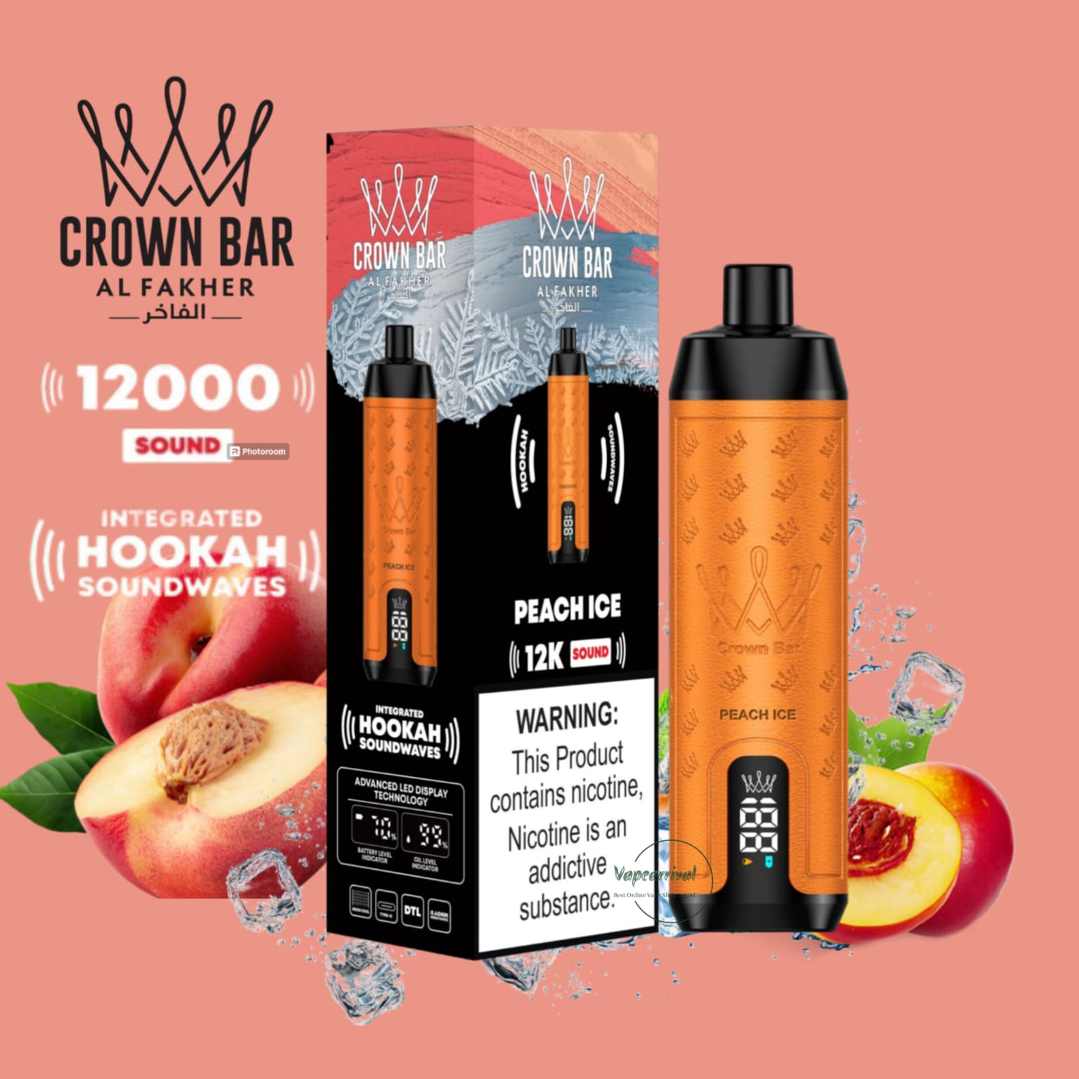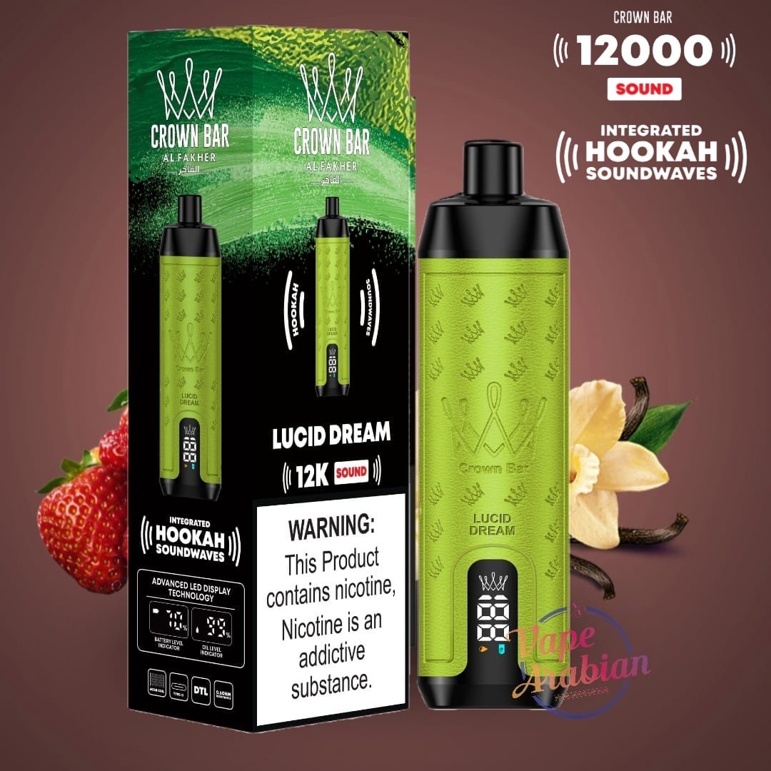 The Al Fakher 12000 Puffs Disposable Kit Hookah Sound, with Integrated Hookah Soundwaves, known as the Al Fakher Crown Bar 12k Puffs Vape, brings together the essence of traditional hookah with contemporary vaping innovation. This revolutionary device combines the classic allure of hookah with modern vaping technology, creating a one-of-a-kind experience.