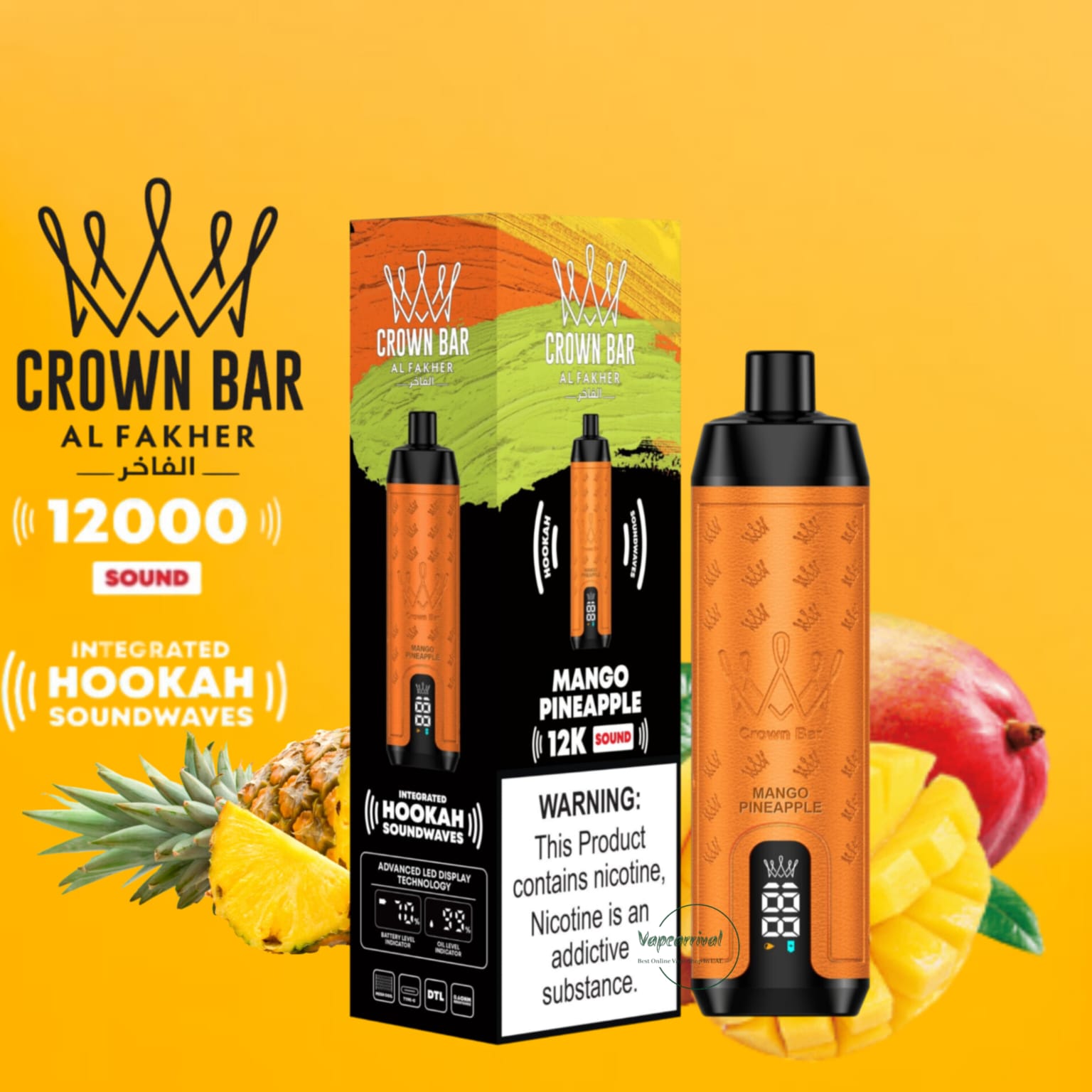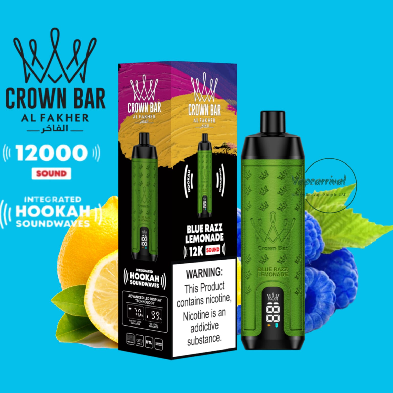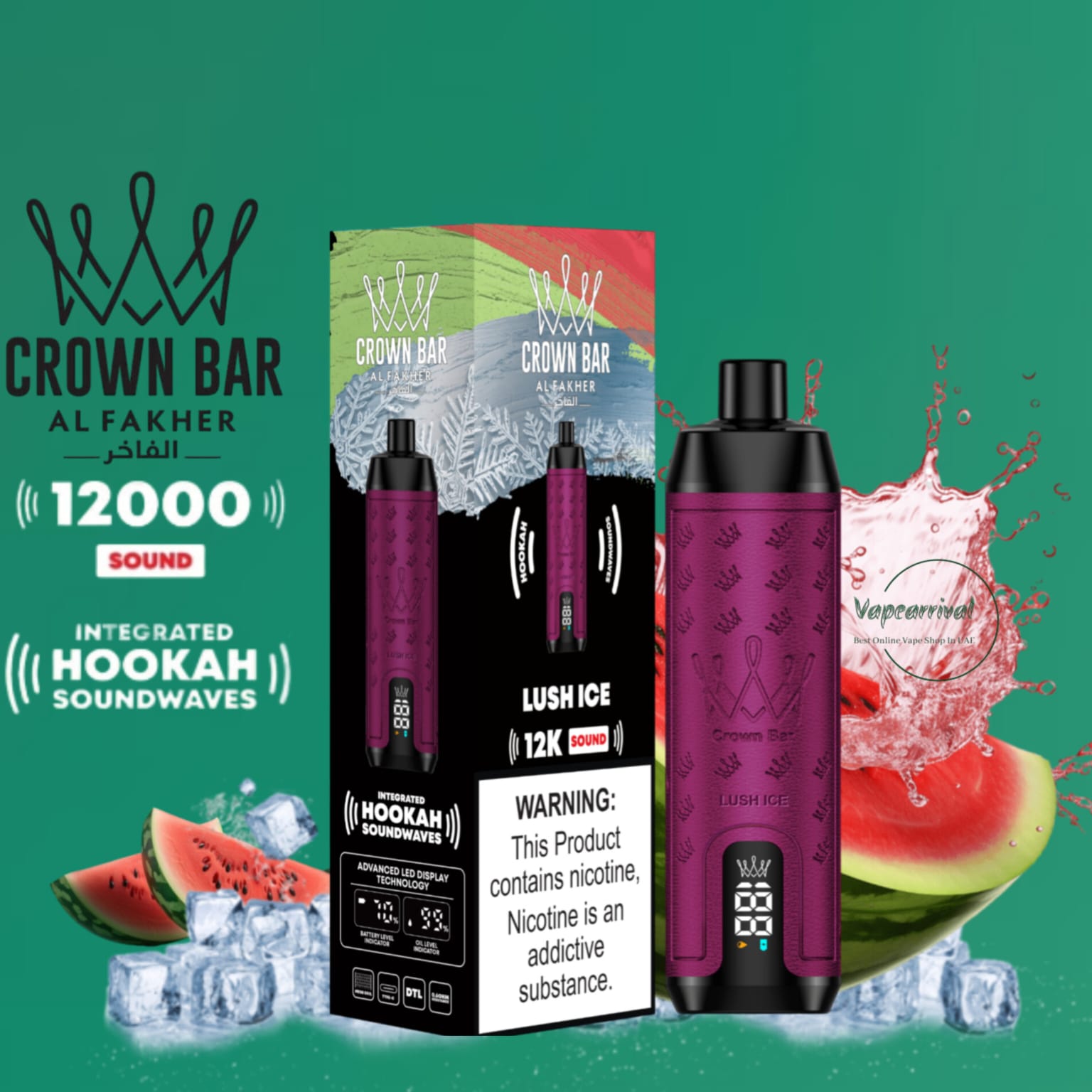 The Al Fakher 12000 Puffs Disposable Kit Hookah Sound, with Integrated Hookah Soundwaves, known as the Al Fakher Crown Bar 12k Puffs Vape, brings together the essence of traditional hookah with contemporary vaping innovation. This revolutionary device combines the classic allure of hookah with modern vaping technology, creating a one-of-a-kind experience.