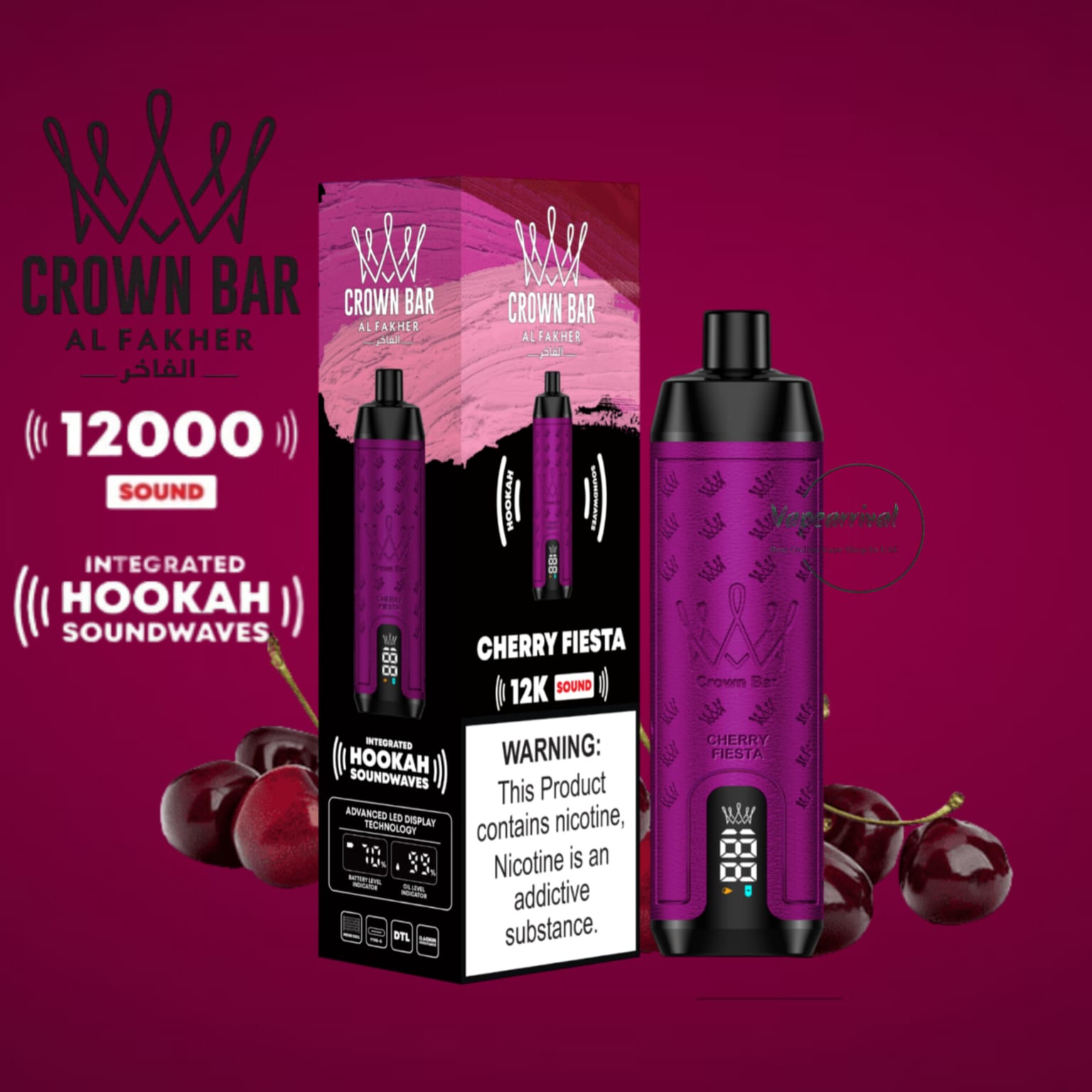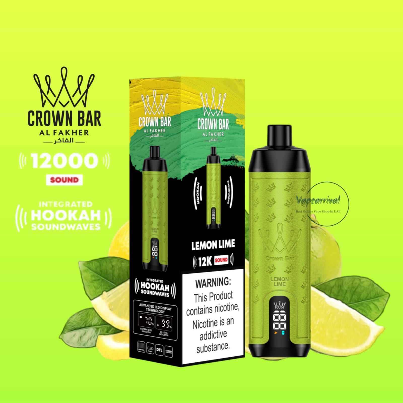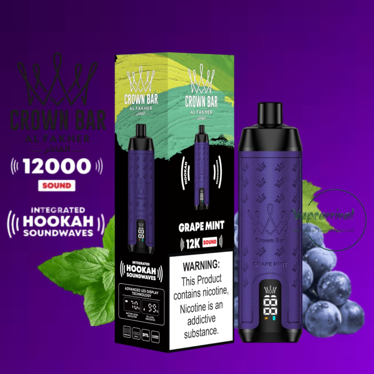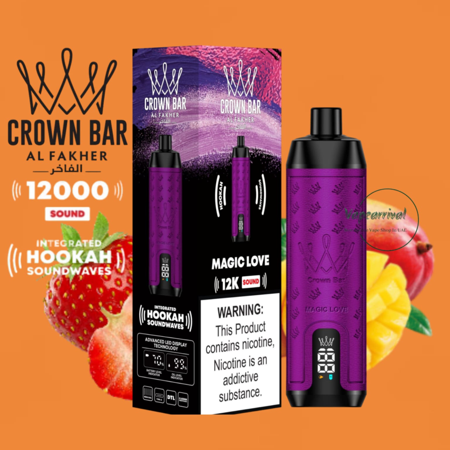The Al Fakher 12000 Puffs Disposable Kit Hookah Sound, with Integrated Hookah Soundwaves, known as the Al Fakher Crown Bar 12k Puffs Vape, brings together the essence of traditional hookah with contemporary vaping innovation. This revolutionary device combines the classic allure of hookah with modern vaping technology, creating a one-of-a-kind experience.