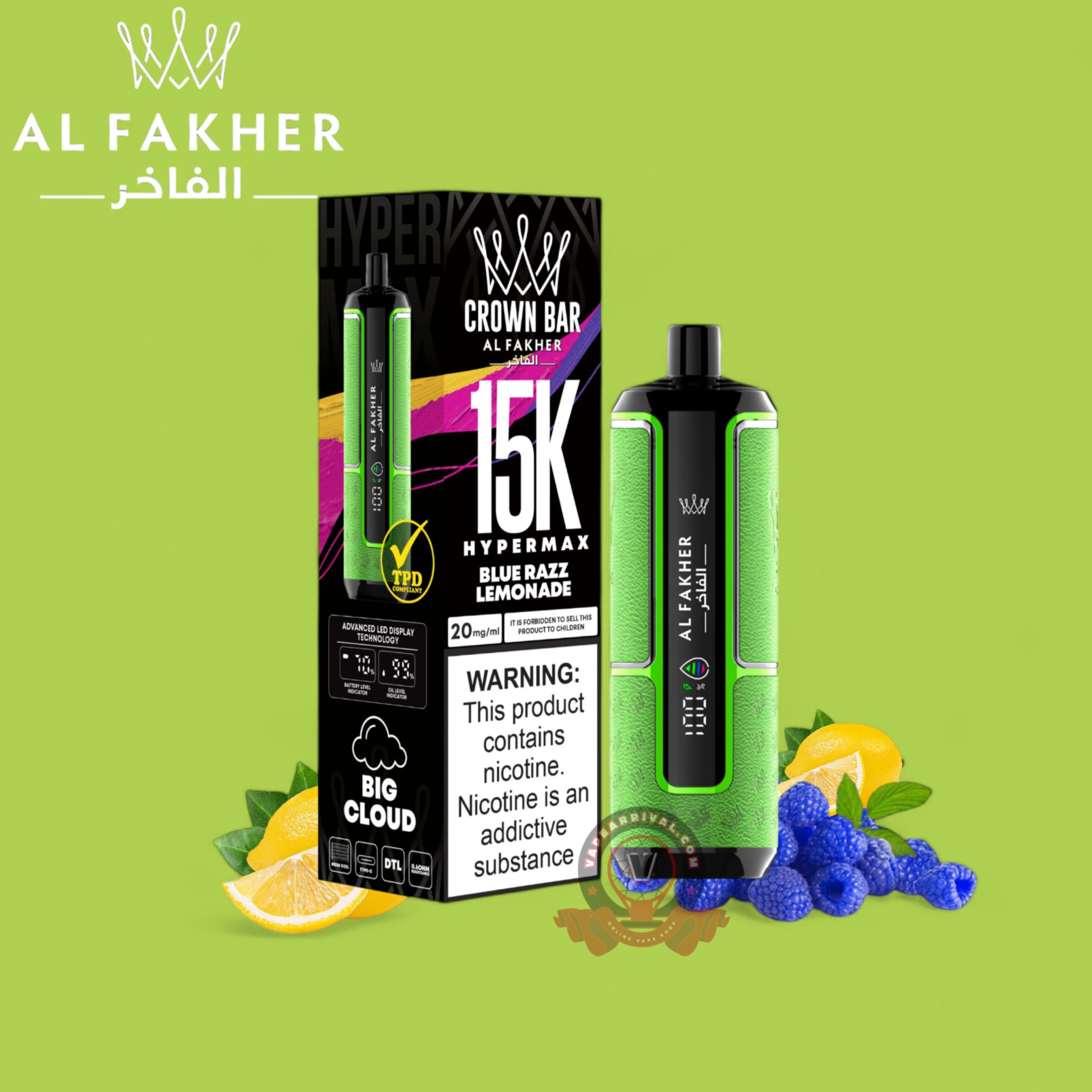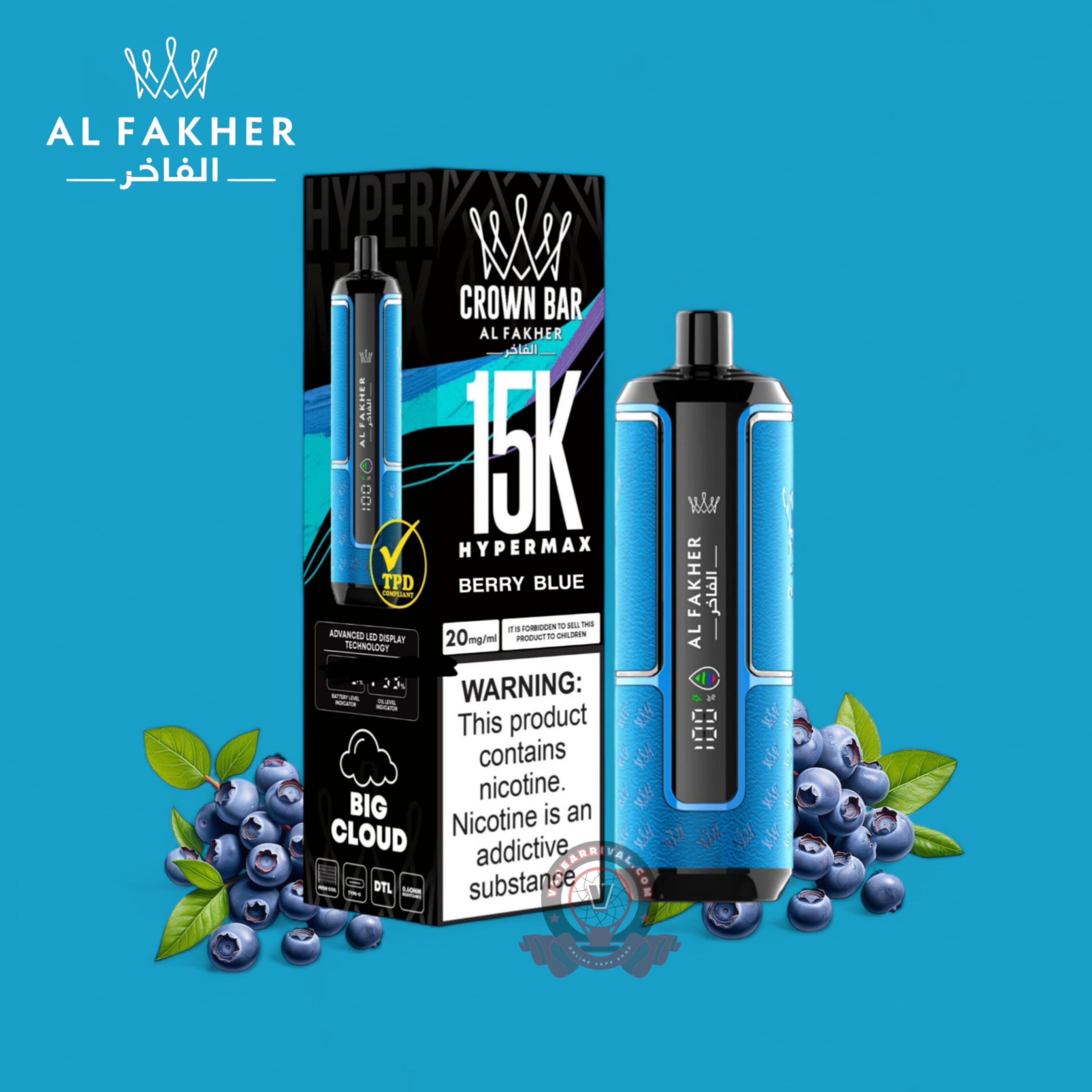 Al Fakher 15000 Puffs Hypermax Disposable – Experience up to 15000 puffs of smooth, flavorful vapor with 30ml of e-liquid and 6MG nicotine strength. Enjoy DTL vaping, mesh coil technology, and quick C Port charging in a compact, leak-resistant design. Choose from 20+ flavors with 9 colorful pods.