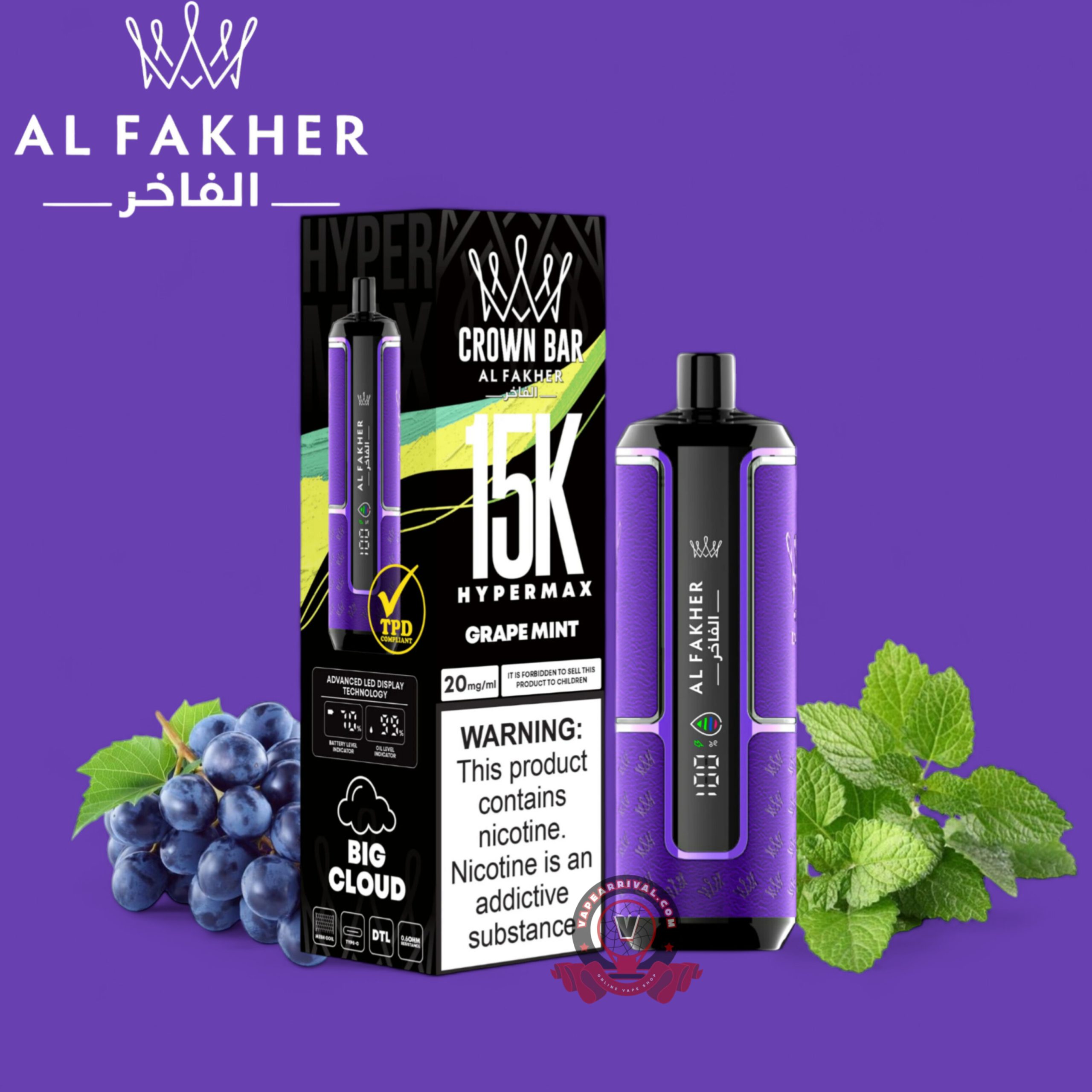Features of Al Fakher Crown Bar 15000 Puffs: