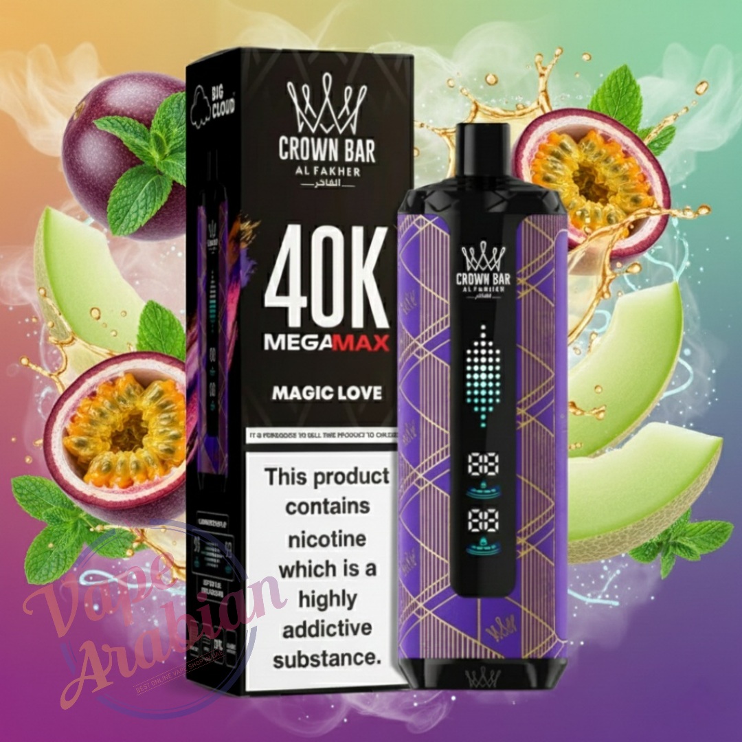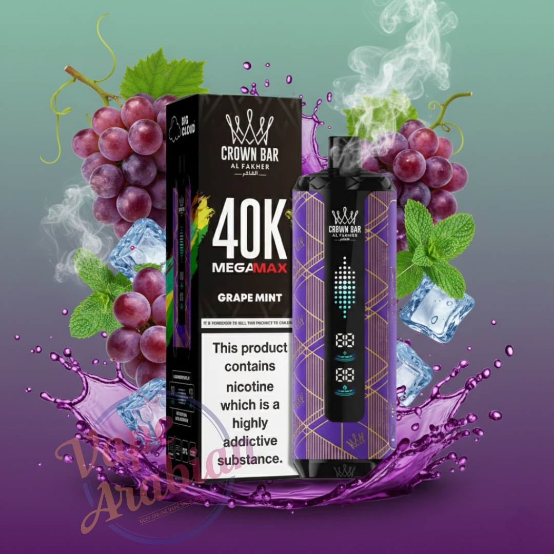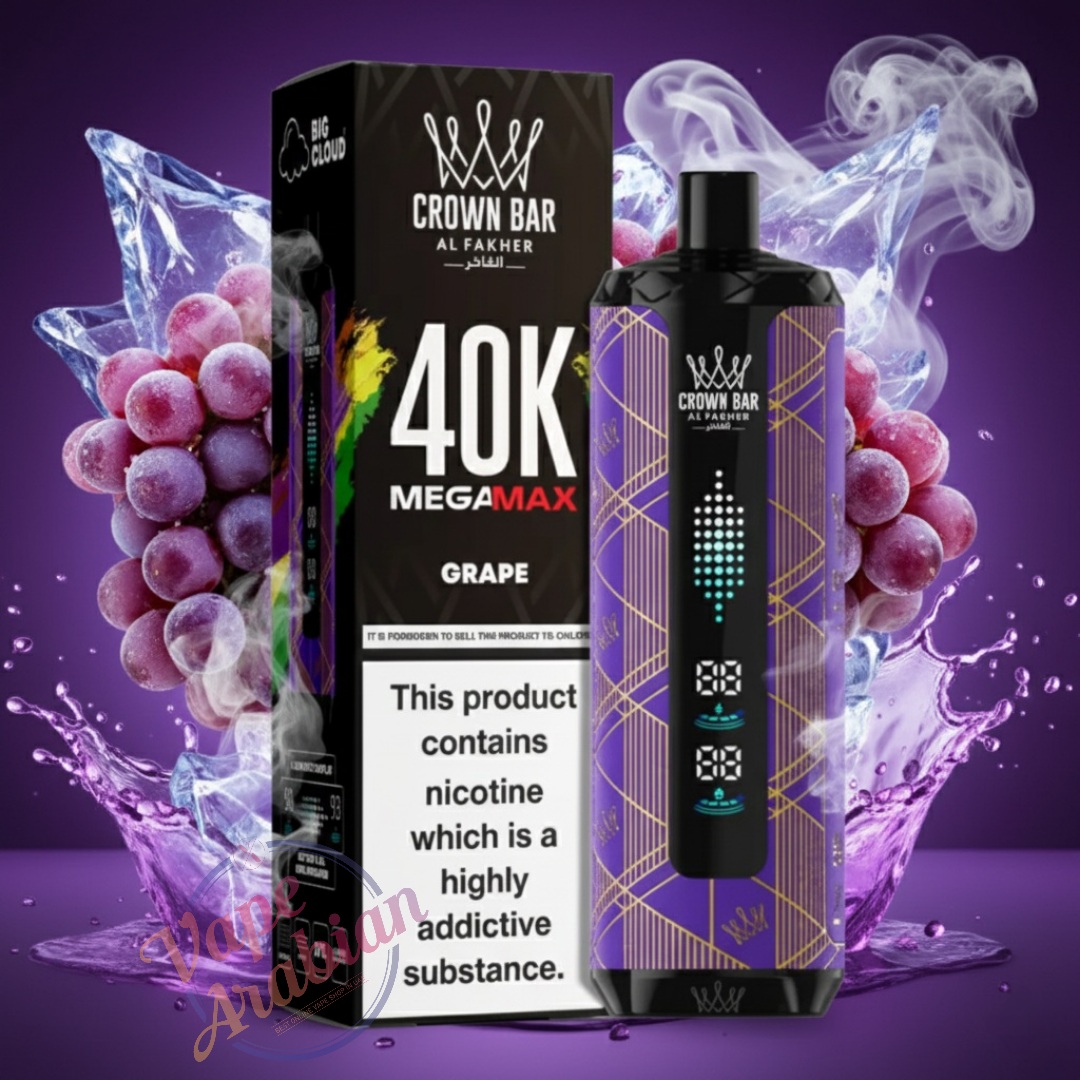 Get the Al Fakher Crown Bar Mega Max 40000 Puffs Disposable Vape today at VapeArrival and enjoy authentic shisha-style flavors, massive clouds, and ultra-long performance in one premium device. With fast delivery, genuine products, and top-quality service, VapeArrival is your trusted destination for the ultimate vaping experience. Order now and vape without limits.