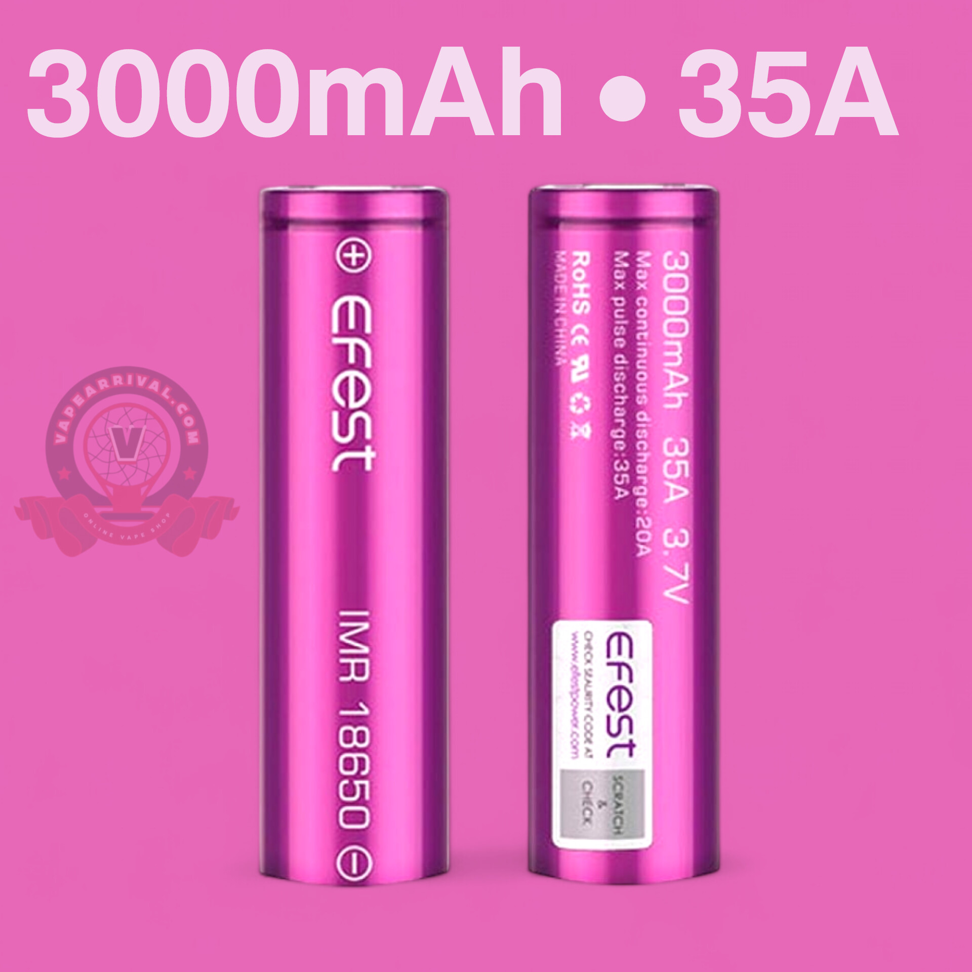 - Efest 18650 35A:The Efest IMR 18650 3000mAh 35A .Battery may be used with a number of vape mods. The large 3000mAh capacity of this battery enables your smartphone to function at its best.