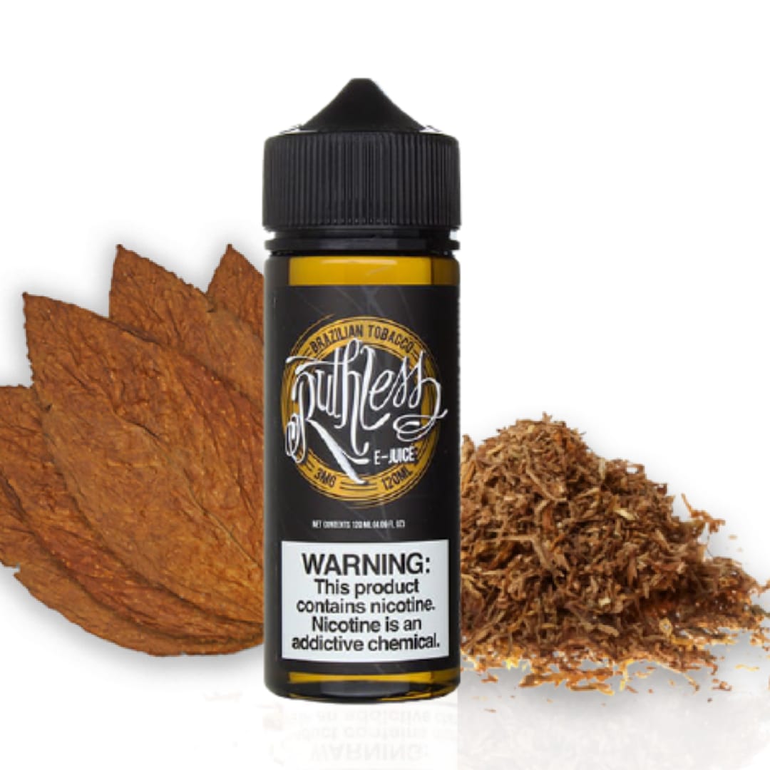 Brazilian Tobacco By Ruthless Ruthless Vapor 120ml can satisfy your sweet and smooth dark tobacco needs with total vaping ease.