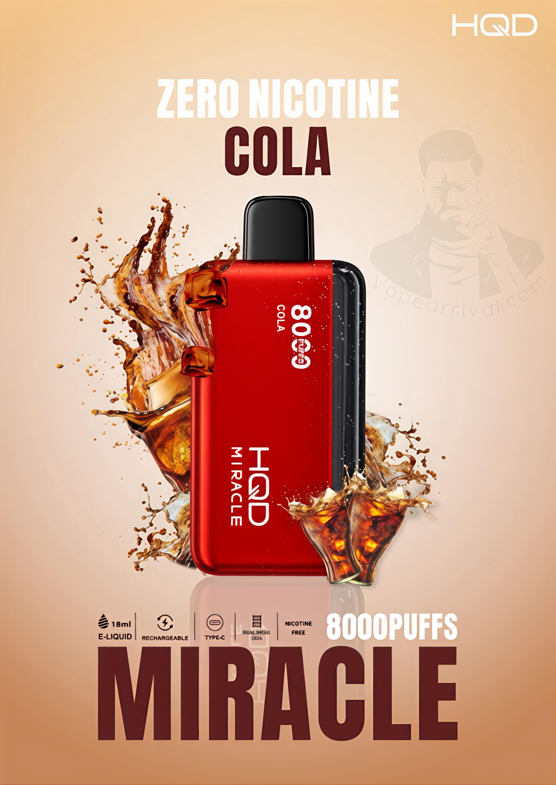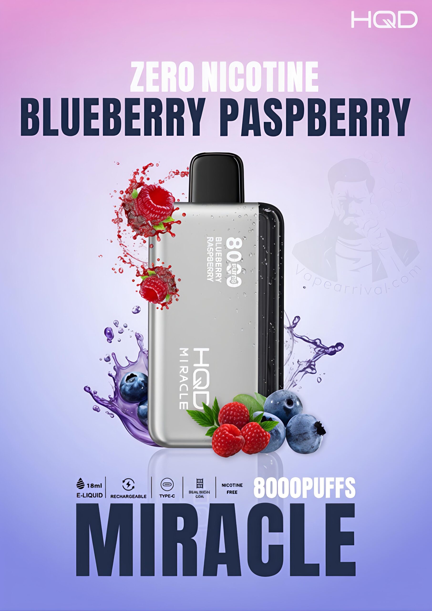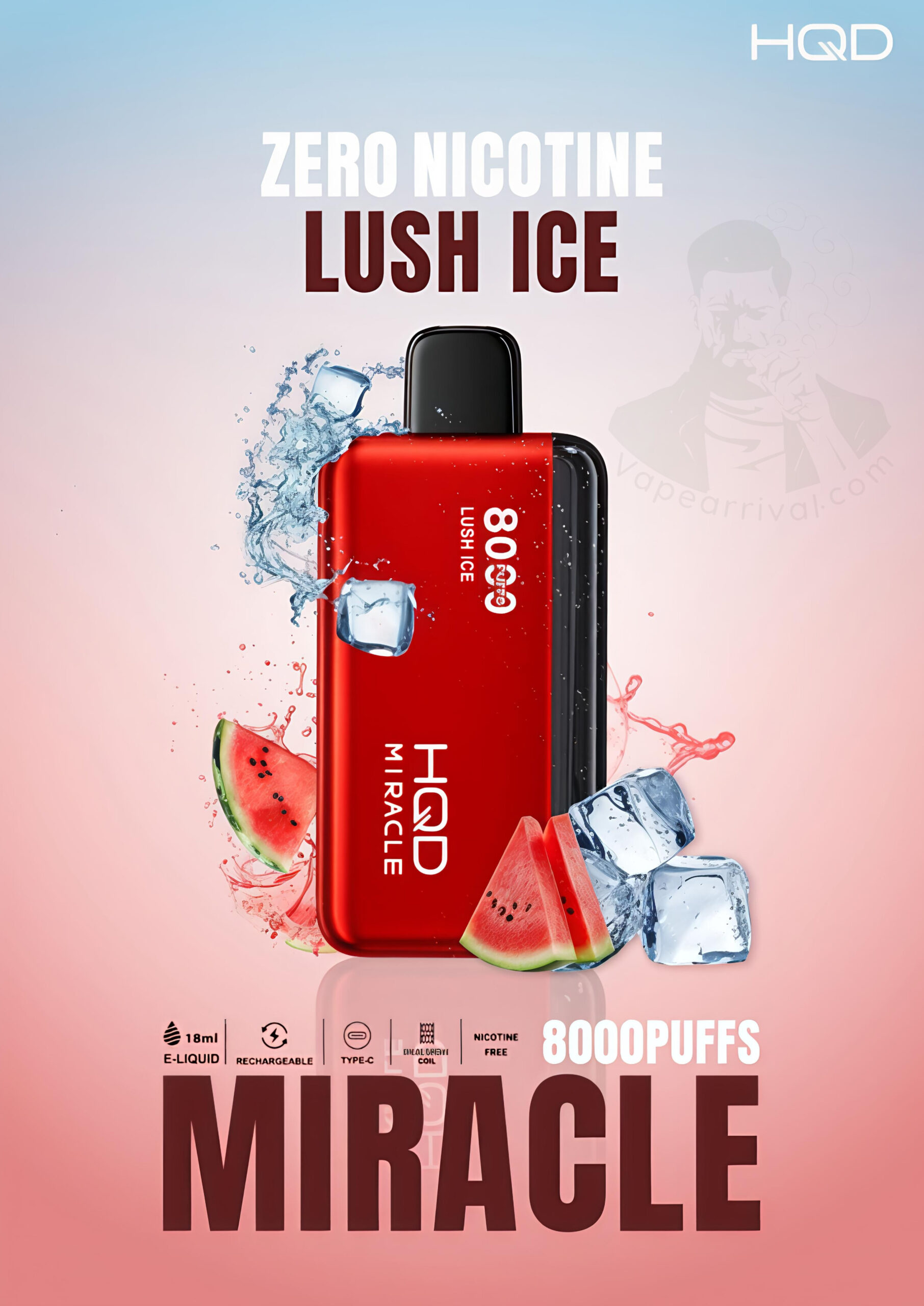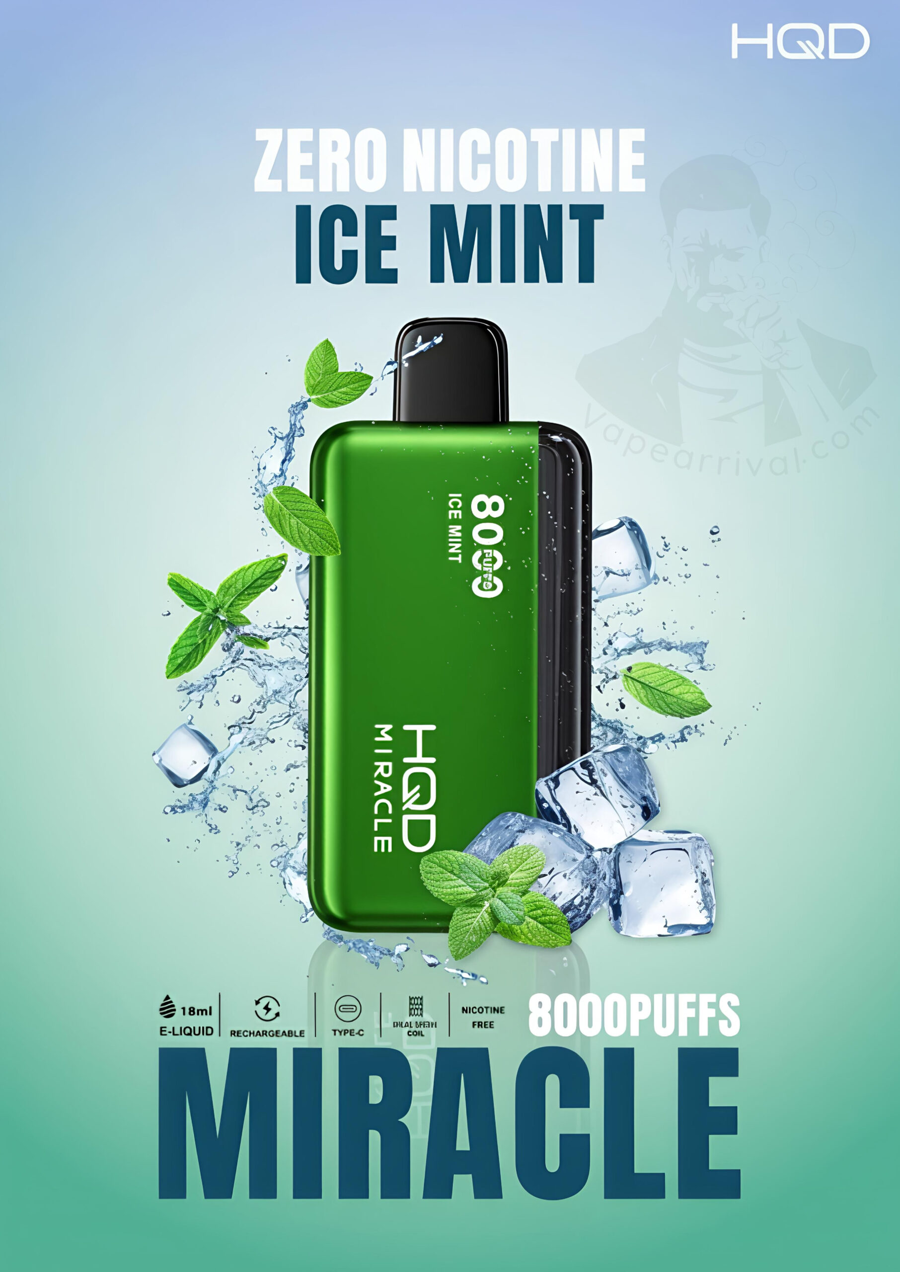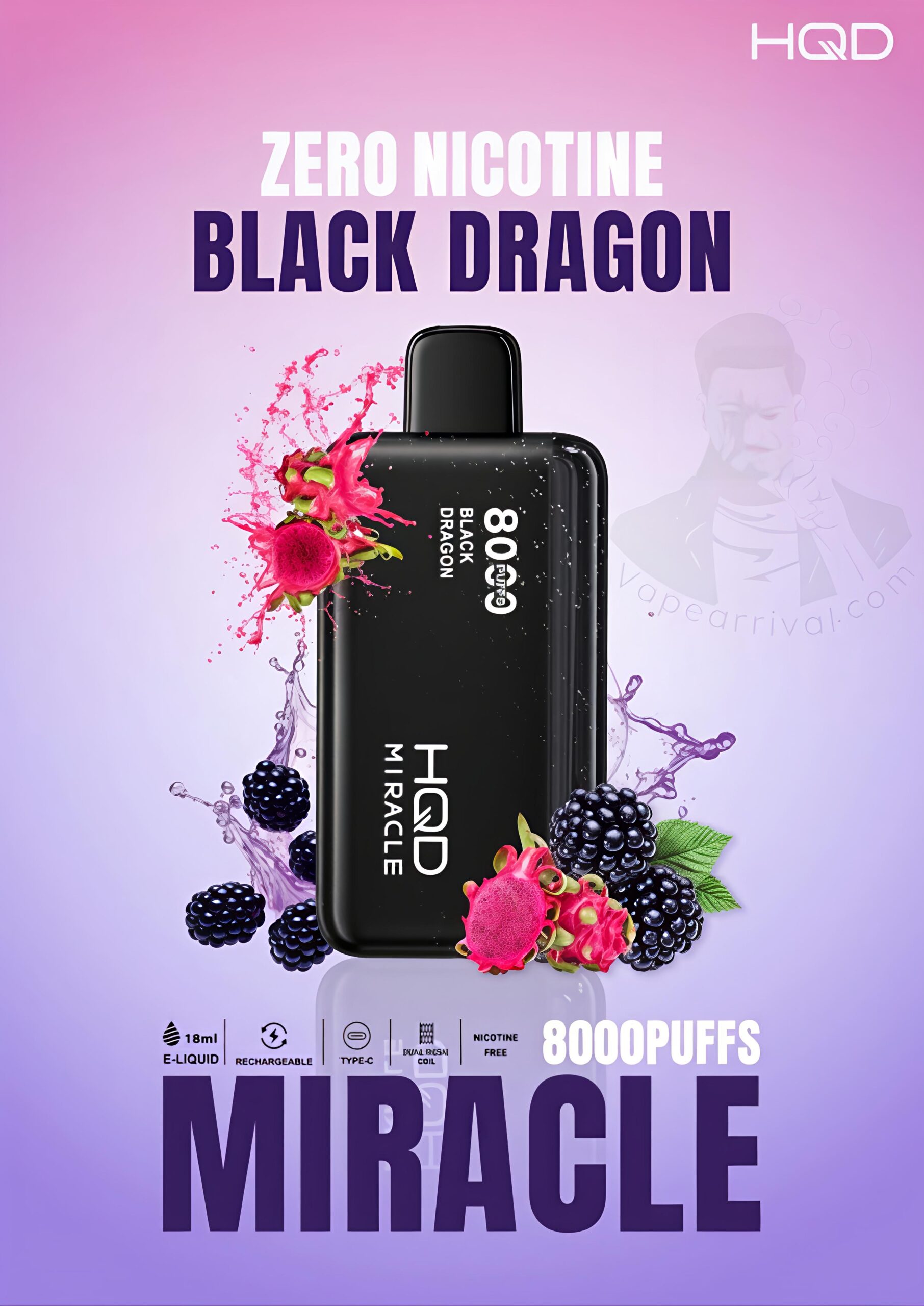 - 1 X HQD Miracle 8000 Puffs Zero Nicotine Vape in 1 Pack