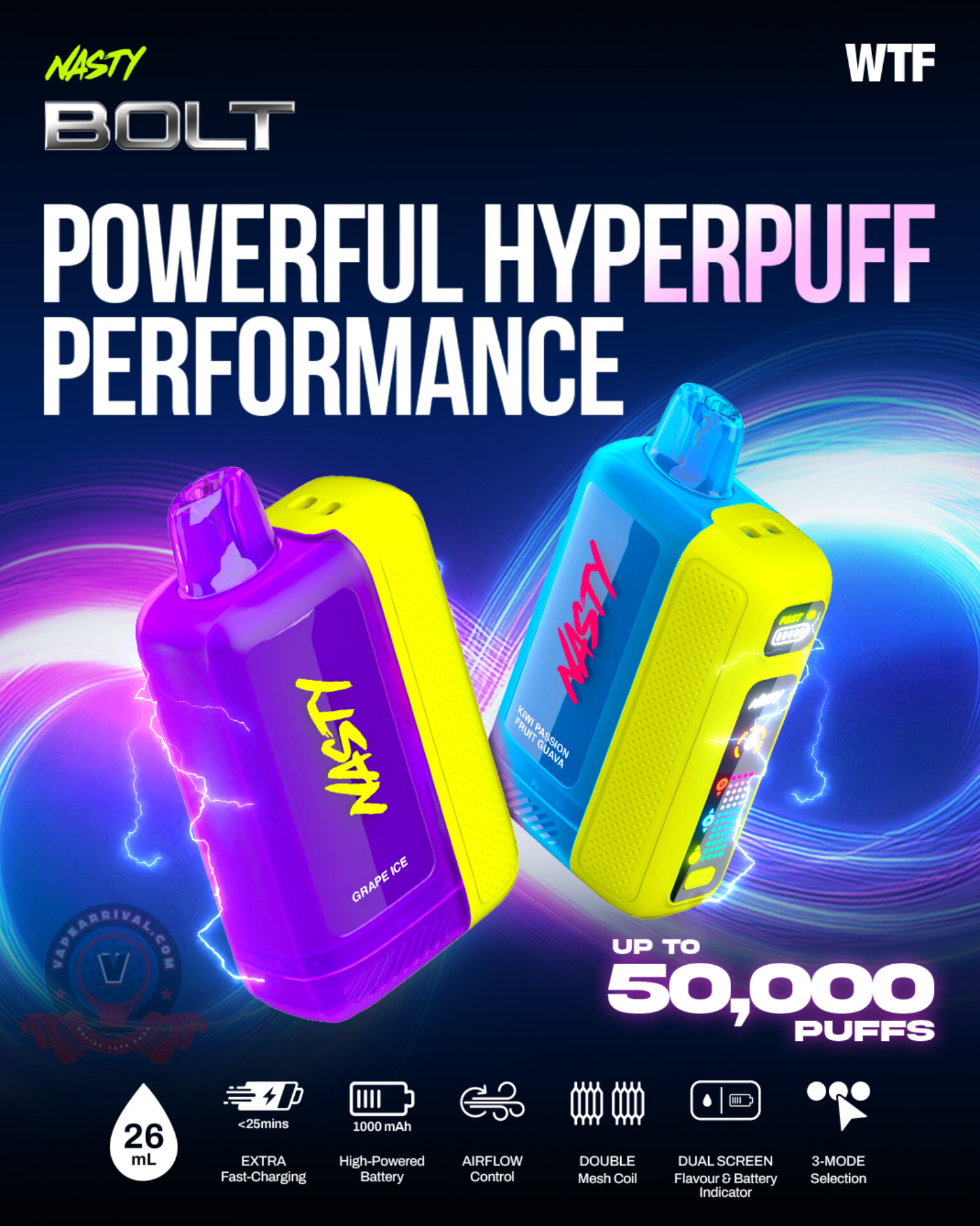Features Nasty Bolt 50K Disposable Vape:
