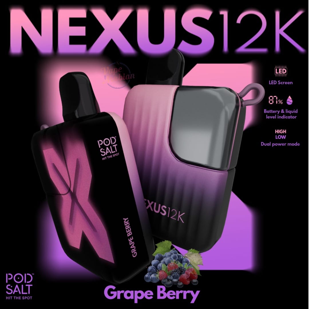 Pod Salt Nexus ntegrated LED display, you can easily monitor both the battery and liquid levels, so you’re always in control. The Pod Salt Nexus 12000 Puffs brings together power, longevity, and user-friendly features in one sleek device, perfect for vapers who demand more.