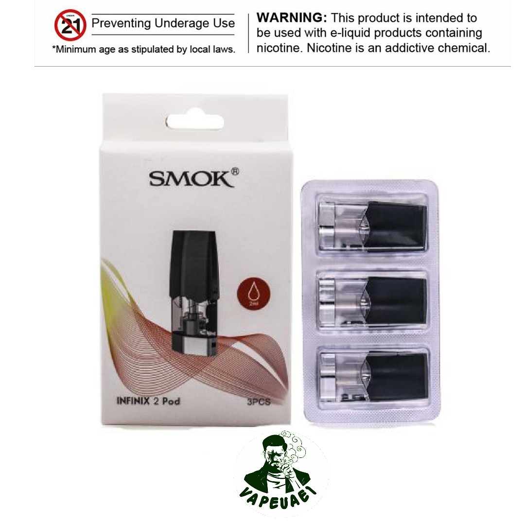 SMOK INFINIX 2 PODS – 1.4 Ohm is an ultra-portable device that uses refillable pods to create an exceptionally easy to use the system. Pick up some replacement pods for the Infinix to keep this bad baby going! Each pod holds 2.0mL of juice and each pack includes 3 pods.