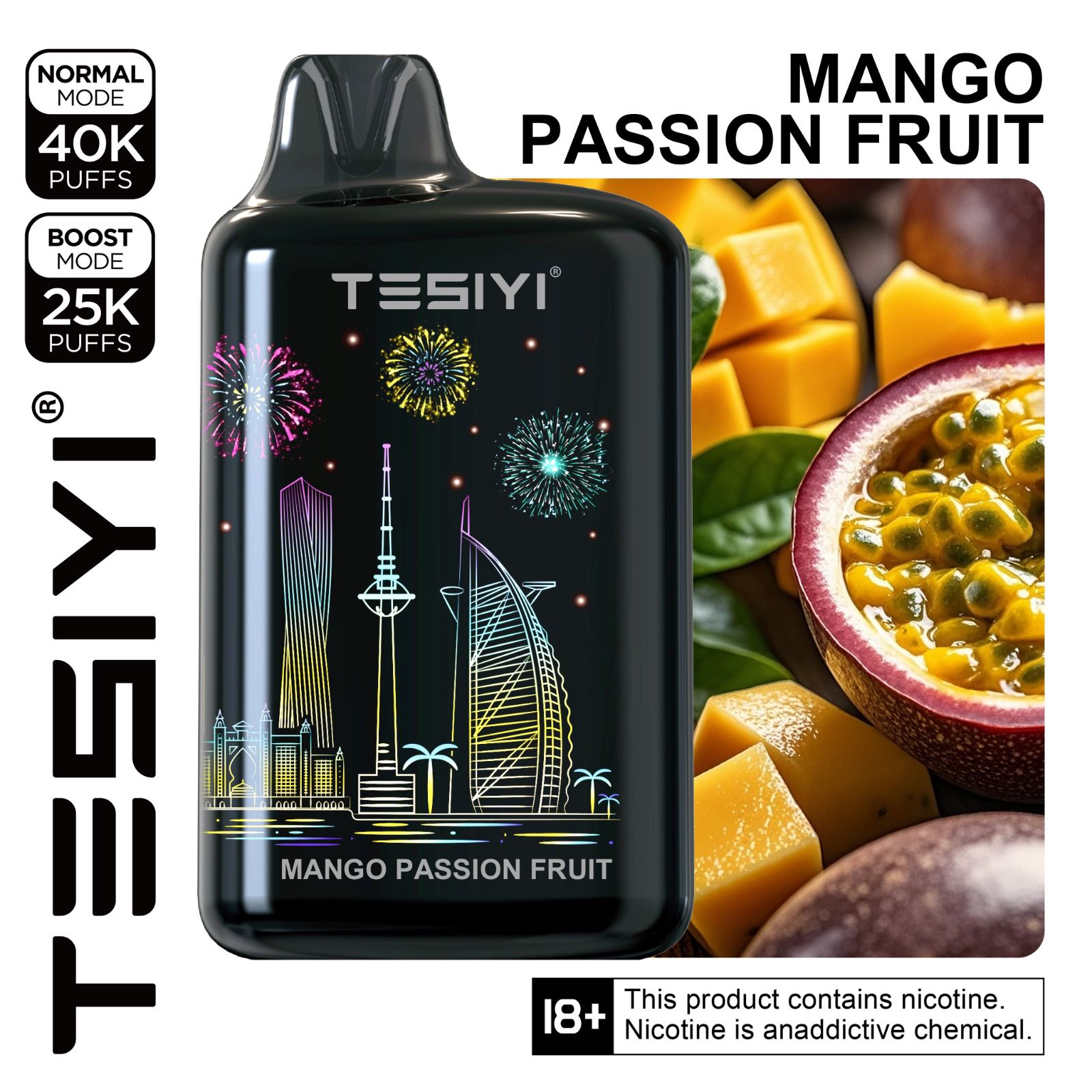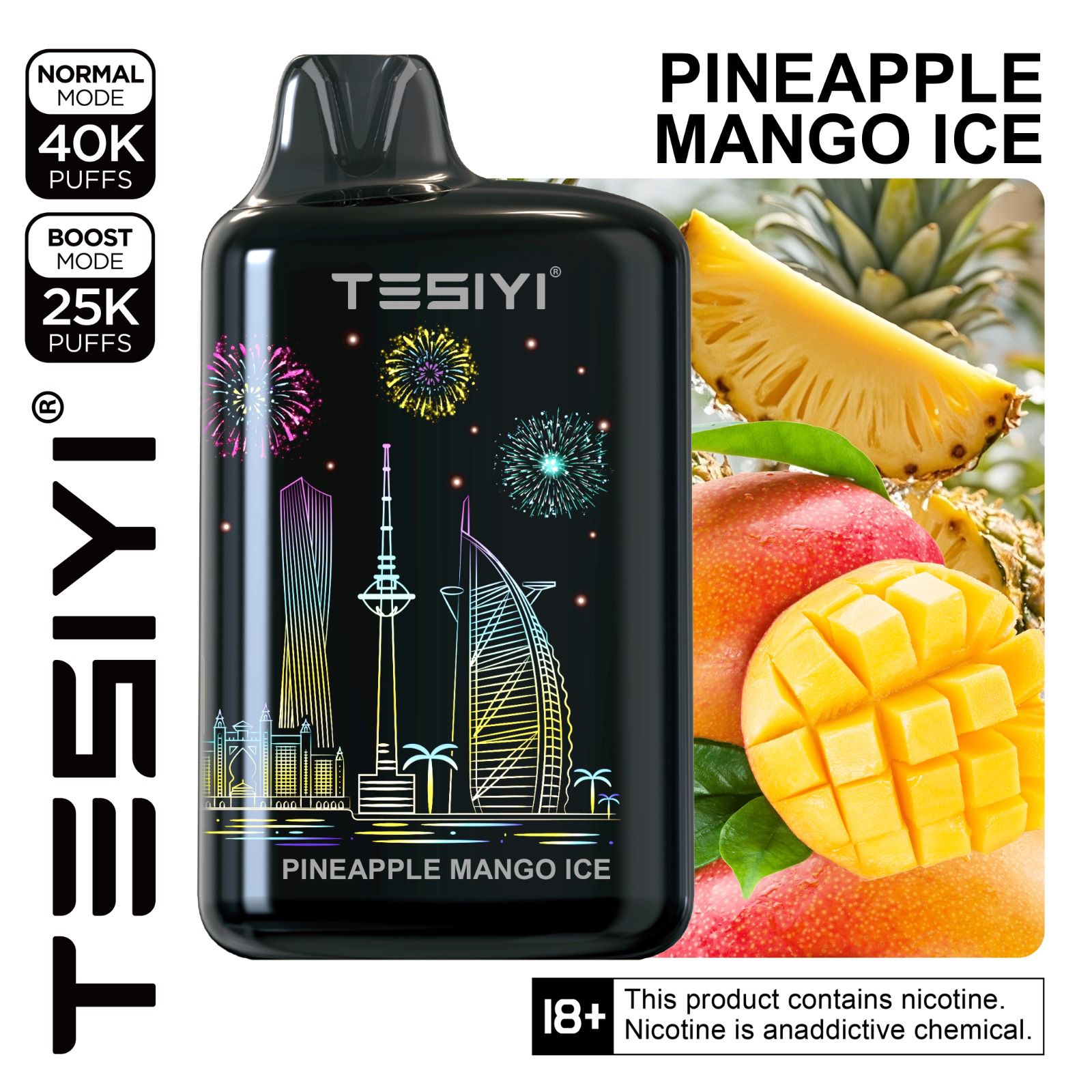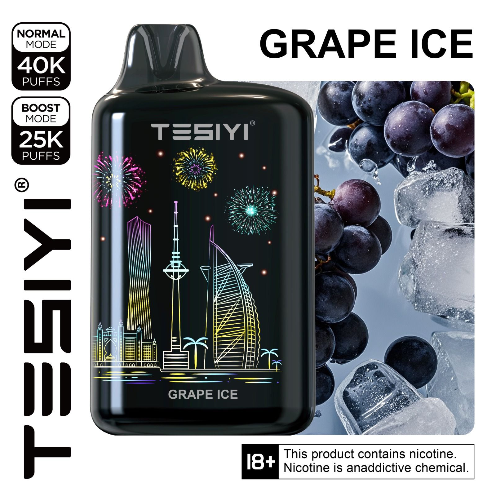 Experience vaping like never before with the TESIYI ULTRA MAX 40000 Puffs Disposable, made for serious vapers who want top performance, big capacity, and good looks. It has a large 25mL e-liquid tank and strong 50mg nicotine, so it can give you up to 40,000 puffs in Normal Mode or 25,000 puffs in Boost Mode, thanks to its efficient dual mesh coil system.
