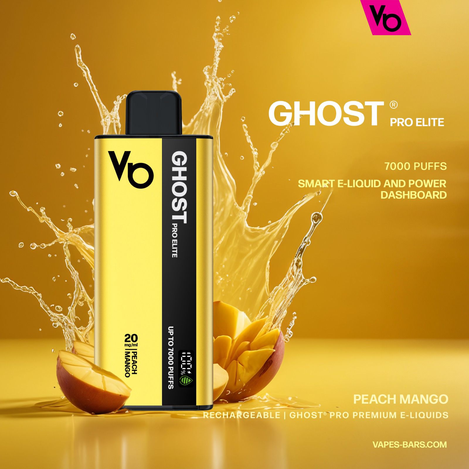 Ghost Pro Elite 7000 Puffs Disposable Vape, offering 7000 puffs, 20mg strength, mesh coil technology, and a convenient rechargeable design.