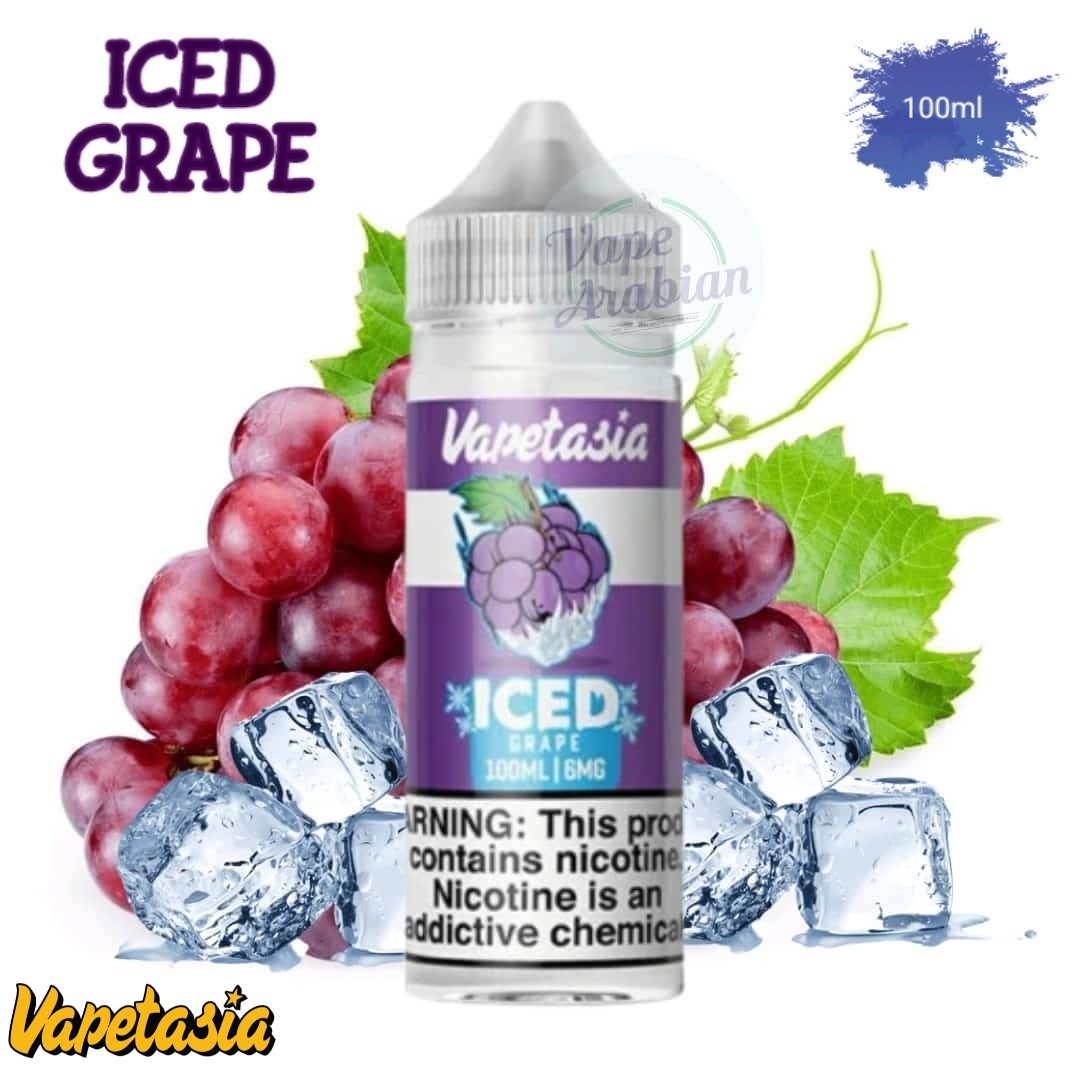 - Iced Grape Vapetasia 100ml: Bunches of ripe bursting grapes frozen by a cool wave of icy sweetness. This flavor might just freeze you over with euphoria
