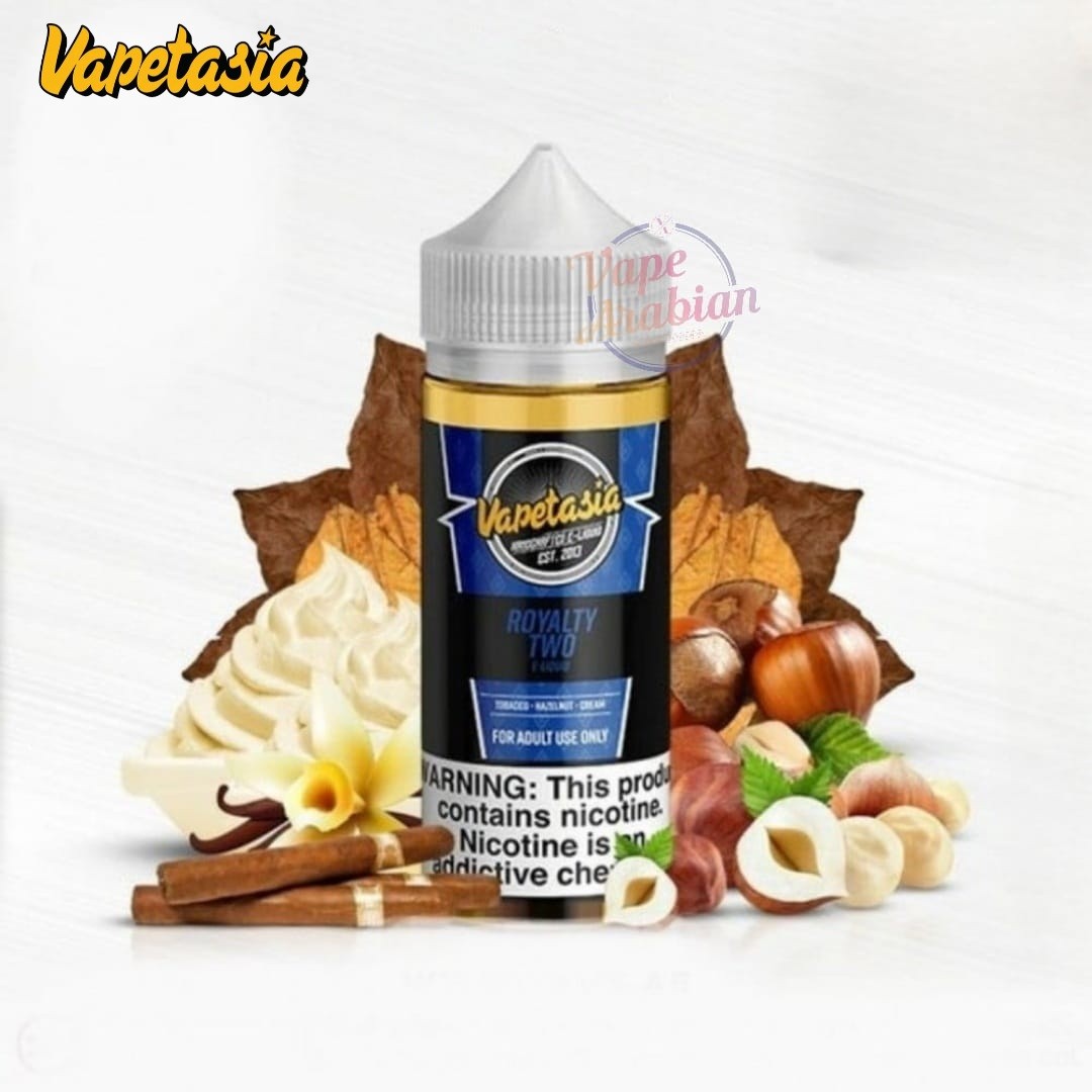 - Royalty Two: Hints of rich custard, sweet hazelnuts, and creamy vanilla forged boldly with a mild tobacco flavor. Our Royalty II Gourmet E-Liquid is an exceptional flavor and favored above all others in our lineup.