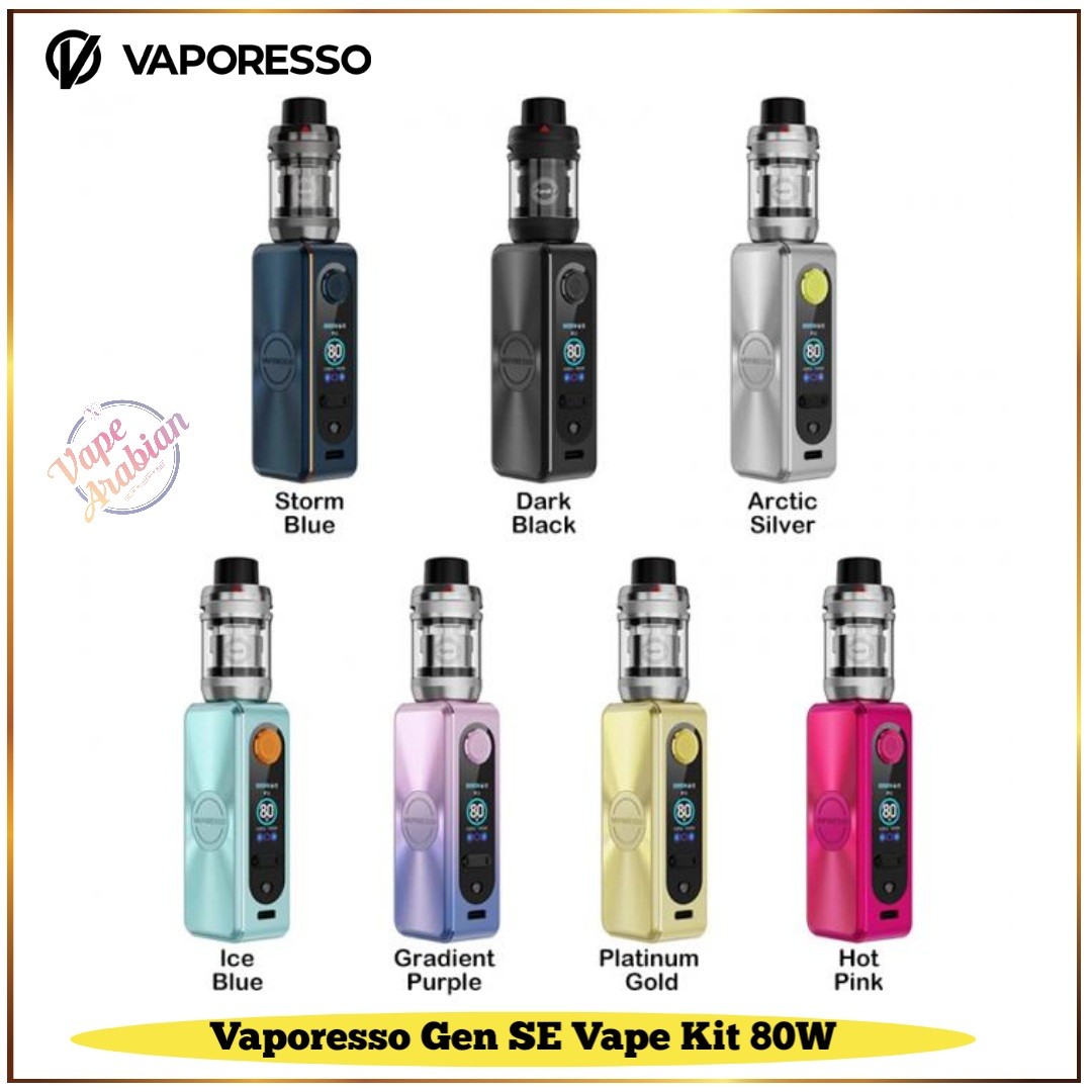 Vaporesso GEN SE Vape Kit is powered by Single 18650 batteries (not included), offering an impressive power range from 5 to 80W. The Gen SE Kit also features a 0.96″ TFT screen ensures clear and easy access to all your settings and battery life information. The paired iTank djustable top-airflow and a top-to-bottom airflow intake system. This design guarantees a smooth and flavorful vapor production every time. The GTi coil now features COREX 2.0 technology, delivering improved flavor and vapor production. The GEN MOD utilizes the AXON CHIP and comes with a newly upgraded UI, offering multiple modes and themes to customize your DTL vaping experience.