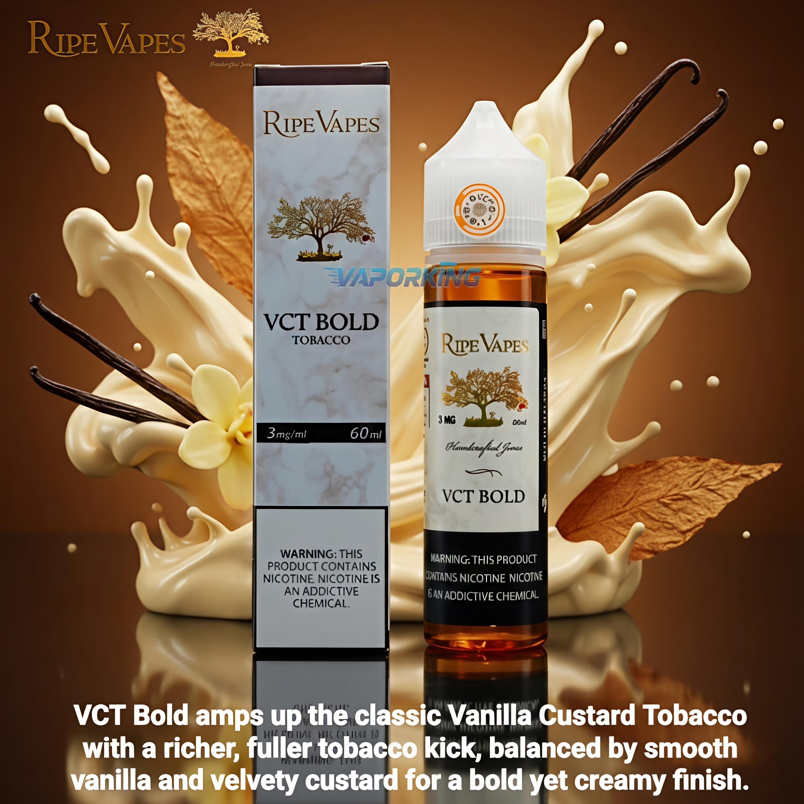 - VCT Bold: A delectable blend of rich, robust, and undeniably bold tobacco leaves and silky smooth vanilla custard that’s as creamy as it gets.
