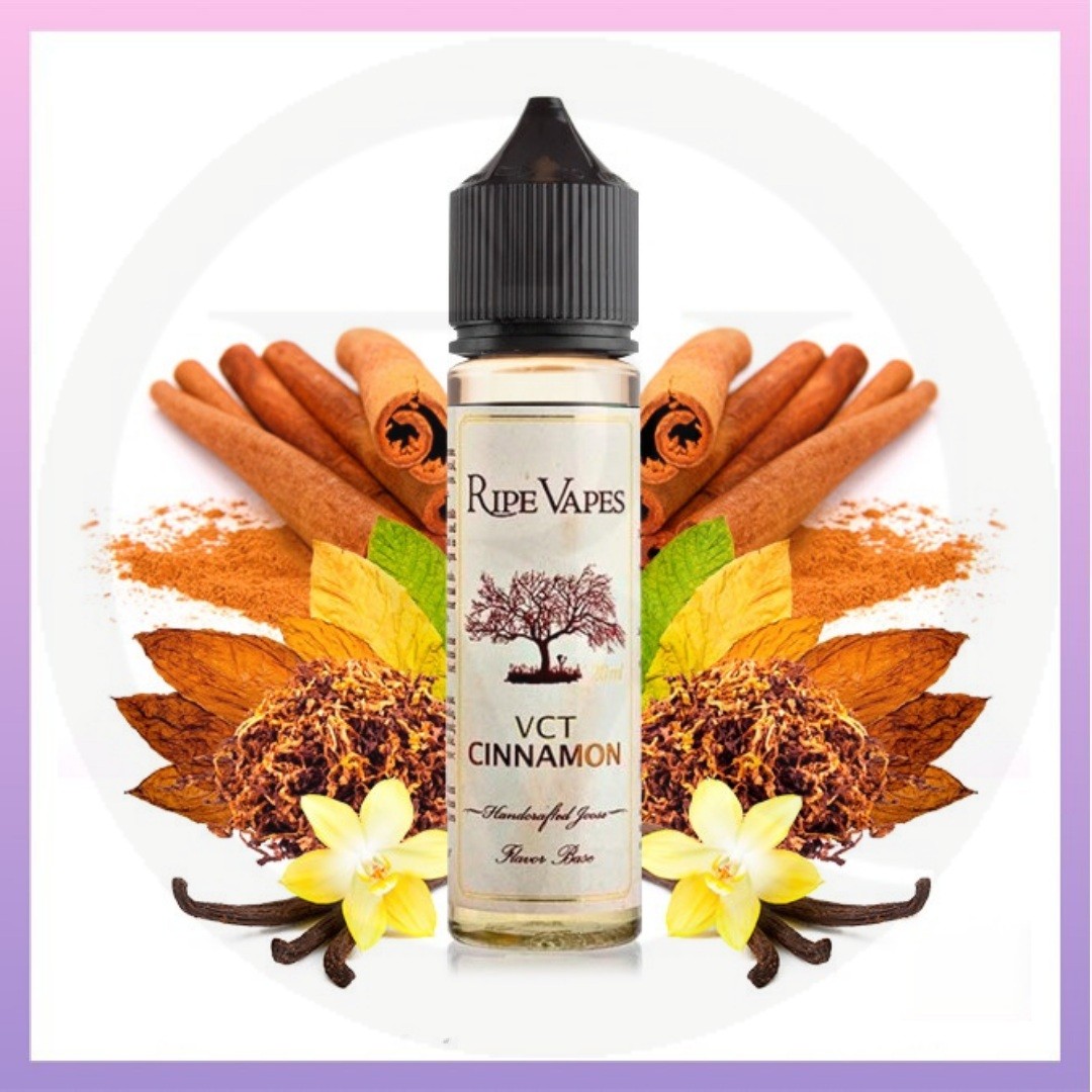 VCT Cinnamon E-Liquid by Ripe Vapes is a deliciously smooth Vanilla, Custard, and Tobacco blend with a touch of Cinnamon.