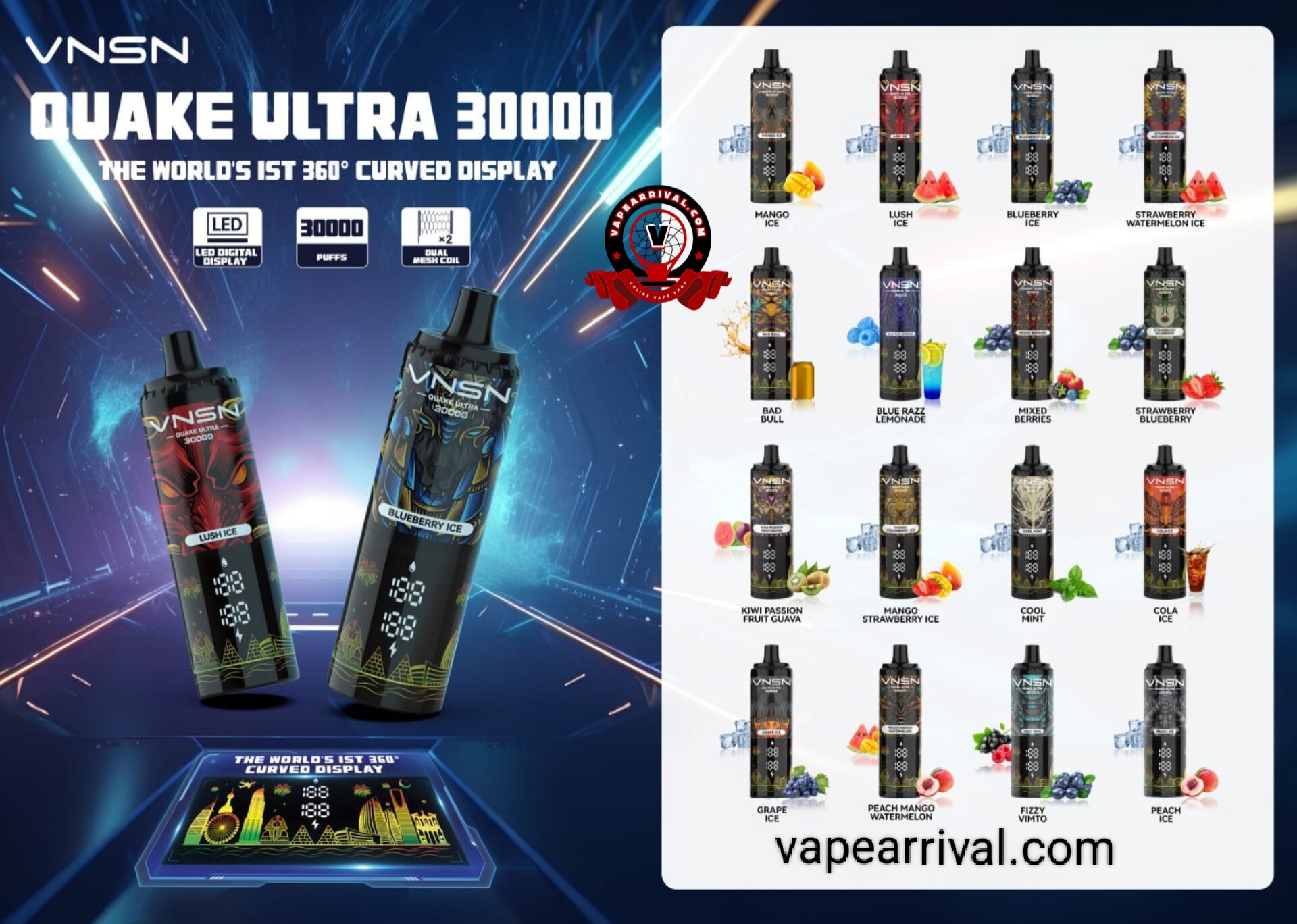 Available Flavors Of VNSN Quake Ultra 30000 Puffs: