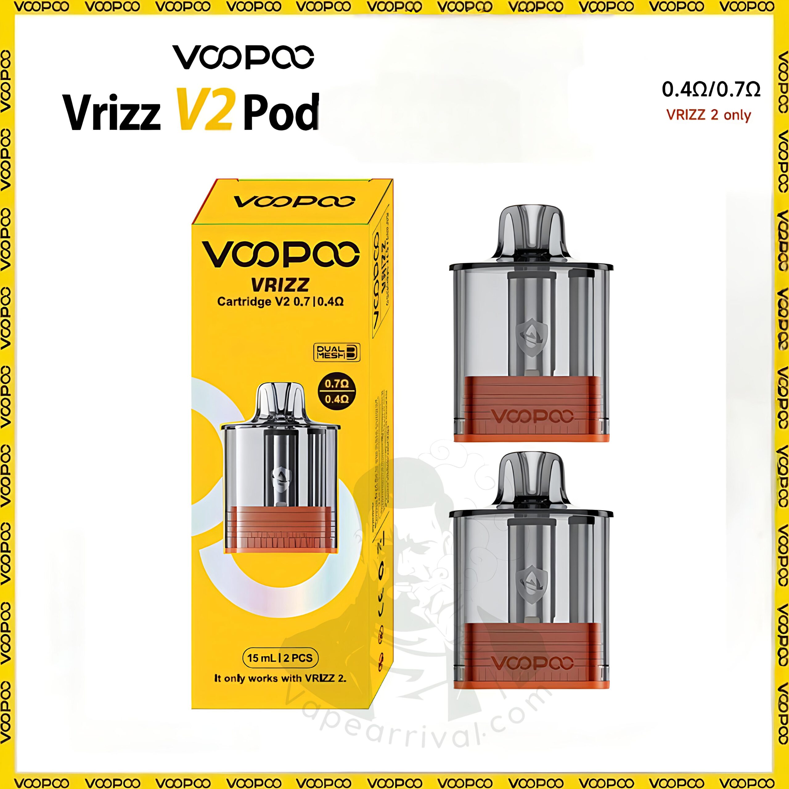 - • Resistance: 0.4ohm, 0.7ohm, Dual Mesh 0.4ohm/0.7ohm (Only for VOOPOO VRIZZ 2 Pod Kit)
