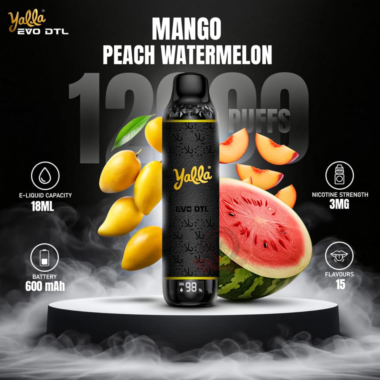 Features of the Yalla EVO DTL 12000 Puff Disposable: